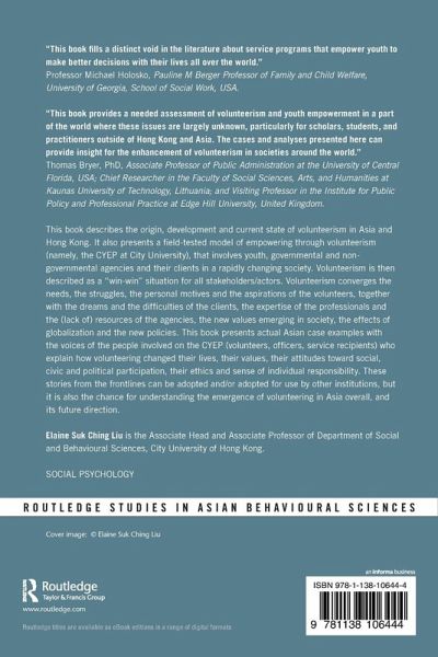 This book describes the origin, development and current state of volunteerism in Asia and Hong Kong. It also presents a field-tested model of empowering through volunteerism (namely, the CYEP at City University), that involves youth, governmental and non-governmental agencies and their clients in a rapidly changing society. Volunteerism is then described as a "win-win" situation for all stakeholders/actors. Volunteerism converges the needs, the struggles, the personal motives and the aspirations of the volunteers, together with the dreams and the difficulties of the clients, the expertise of the professionals and the (lack of) resources of the agencies, the new values emerging in society, the effects of globalization and the new policies. This book presents actual Asian case examples with the voices of the people involved on the CYEP (volunteers, officers, service recipients) who explain how volunteering changed their lives, their values, their attitudes toward social, civic and political participation, their ethics and sense of individual responsibility. These stories from the frontlines can be adopted and/or adopted for use by other institutions, but it is also the chance for understanding the emergence of volunteering in Asia overall, and its future direction.