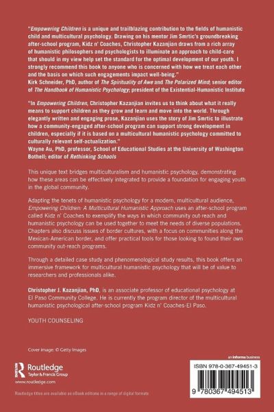 This unique text bridges multiculturalism and humanistic psychology, demonstrating how these areas can be effectively integrated to provide a foundation for engaging youth in the global community. Adapting the tenets of humanistic psychology for a modern, multicultural audience, Empowering Children: A Multicultural Humanistic Approach uses an after-school program called Kidz n' Coaches to exemplify the ways in which community out-reach and humanistic psychology can be used together to meet the needs of diverse populations. Chapters also discuss issues of border cultures, with a focus on communities along the Mexican-American border, and offer practical tools for those looking to found their own community out-reach programs. Through a detailed case study and phenomenological study results, this book offers an immersive framework for multicultural humanistic psychology that will be of value to researchers and professionals alike.