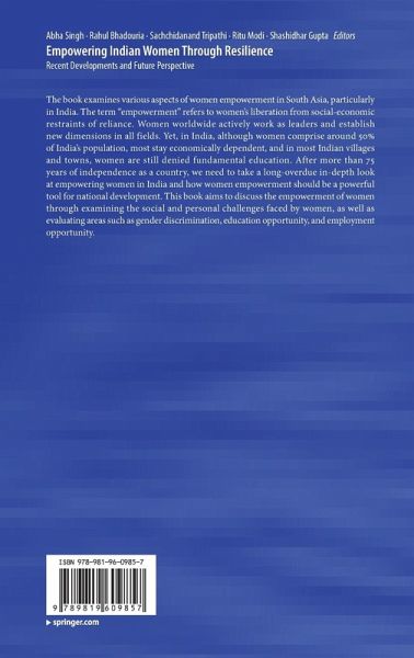 The book examines various aspects of women empowerment in South Asia, particularly in India. The term "empowerment" refers to women's liberation from social-economic restraints of reliance. Women worldwide actively work as leaders and establish new dimensions in all fields. Yet, in India, although women comprise around 50% of India's population, most stay economically dependent, and in most Indian villages and towns, women are still denied fundamental education. After more than 75 years of independence as a country, we need to take a long-overdue in-depth look at empowering women in India and how women empowerment should be a powerful tool for national development. This book aims to discuss the empowerment of women through examining the social and personal challenges faced by women, as well as evaluating areas such as gender discrimination, education opportunity, and employment opportunity.