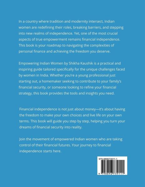 Empowering Indian Women: A Journey to Financial Independence" by Shikha Kaushik is an essential guide for Indian women striving for economic freedom. Recognizing the transformative power of financial independence, the book addresses the unique challenges Indian women face while offering practical solutions to overcome them. Why This Book Matters: In India, women often manage households but are sidelined in financial decisions. As this dynamic evolves, "Empowering Indian Women" provides a clear roadmap for navigating societal norms, cultural expectations, and financial complexities. It equips readers with the tools to build confidence, achieve security, and inspire others. What You'll Learn: Financial Foundations: Budgeting, saving, and planning tailored for Indian women. Earning & Investing: Negotiating salaries, career advancement, and managing investments with confidence. Overcoming Challenges: Tackling the gender pay gap, work-life balance, and cultural barriers. Smart Saving & Debt Management: Building emergency funds, planning for retirement, and differentiating good vs. bad debt. Leveraging Technology: Using apps and tools for financial growth. Whether you're a young professional, homemaker, or seasoned career woman, this book is a must-read for building a future of confidence and empowerment. Join the movement to transform not only your life but also the lives of future generations. Let's break the chains of financial dependence together!