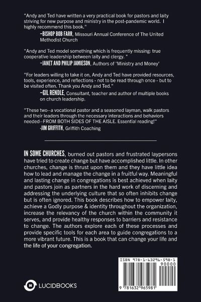In some churches, burned out pastors and frustrated laypersons have tried to create change but have accomplished little. In other churches, change is thrust upon them and they have little idea how to lead and manage the change in a fruitful way. Meaningful and lasting change in congregations is best achieved when laity and pastors join as partners in the hard work of discerning and addressing the underlying culture that so often inhibits change but is often ignored. This book describes how to empower laity, achieve a Godly purpose & identity throughout the organization, increase the relevancy of the church within the community it serves, and provide healthy responses to barriers and resistance to change. The authors explore each of these processes and provide specific tools for each area to guide congregations to a more vibrant future. This is a book that can change your life and the life of your congregation. Access to free downloads of tools used throughout the book!