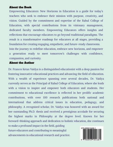 Empowering Minds: New Horizons in Education is an essential guide for educators, leaders, and lifelong learners ready to reshape the educational landscape and nurture a new generation of thinkers, problem-solvers, and compassionate global citizens. This visionary book addresses the most pressing challenges and transformative opportunities facing today's educators. Through a rich exploration of innovative strategies-from active and experiential learning to digital integration and the fusion of indigenous knowledge with modern practices-Empowering Minds serves as a roadmap for building engaging and inclusive learning environments. Each chapter is filled with practical techniques, forward-thinking approaches, and actionable insights that ignite curiosity, cultivate critical thinking, and build resilience in both educators and students. Honoring teachers as the architects of a brighter future, this book equips them with the tools to adapt, innovate, and excel in a rapidly evolving world. Empowering Minds: New Horizons in Education is essential reading for anyone dedicated to fostering an adaptable, inclusive, and deeply empowering culture of learning. Whether you're a teacher, administrator, or advocate for educational reform, this book will inspire you to lead with vision, creativity, and a profound sense of purpose.