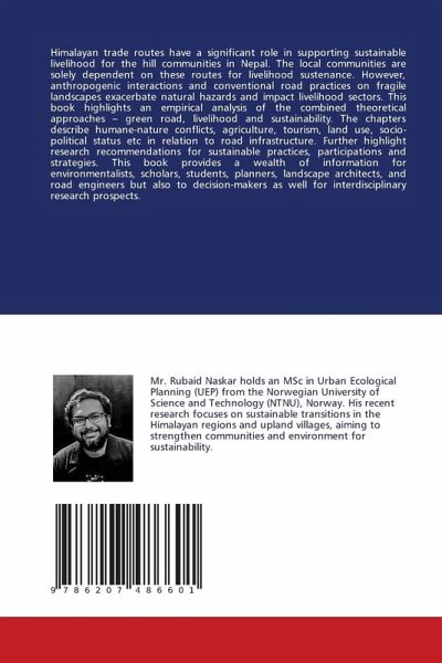 Himalayan trade routes have a significant role in supporting sustainable livelihood for the hill communities in Nepal. The local communities are solely dependent on these routes for livelihood sustenance. However, anthropogenic interactions and conventional road practices on fragile landscapes exacerbate natural hazards and impact livelihood sectors. This book highlights an empirical analysis of the combined theoretical approaches - green road, livelihood and sustainability. The chapters describe humane-nature conflicts, agriculture, tourism, land use, socio-political status etc in relation to road infrastructure. Further highlight research recommendations for sustainable practices, participations and strategies. This book provides a wealth of information for environmentalists, scholars, students, planners, landscape architects, and road engineers but also to decision-makers as well for interdisciplinary research prospects.