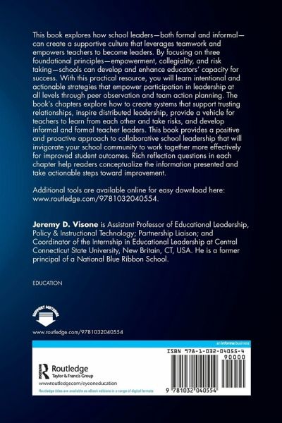 This book explores how school leaders-both formal and informal-can create a supportive culture that leverages teamwork and empowers teachers to become leaders. By focusing on three foundational principles-empowerment, collegiality, and risk taking-schools can develop and enhance educators' capacity for success. With this practical resource, you will learn intentional and actionable strategies that empower participation in leadership at all levels through peer observation and team action planning. The book's chapters explore how to create systems that support trusting relationships, inspire distributed leadership, provide a vehicle for teachers to learn from each other and take risks, and develop informal and formal teacher leaders. This book provides a positive and proactive approach to collaborative school leadership that will invigorate your school community to work together more effectively for improved student outcomes. Rich reflection questions in each chapter help readers conceptualize the information presented and take actionable steps toward improvement