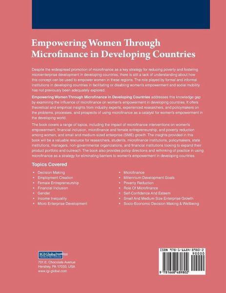 Empowering Women Through Microfinance in Developing Countries is a book that explores how microfinance can be used to empower women in developing countries. It provides theoretical and empirical insights from industry experts, experienced researchers, and policymakers on the problems, processes, and prospects of using microfinance as a catalyst for women's empowerment in the developing world. The book covers a range of topics, including the impact of microfinance interventions on women's empowerment, financial inclusion, and women's entrepreneurship, poverty reduction among women, and small and medium-sized enterprise growth. This book addresses the lack of understanding about how microfinance can be used to empower women in developing countries. The insights provided in this book will be valuable for researchers, students, microfinance institutions, policymakers, state institutions, managers, non-governmental organizations, and financial institutions looking to expand their product portfolio and outreach. The book also provides policy directions and rethinking of practice in using microfinance as a strategy for eliminating barriers to women's empowerment in developing countries.