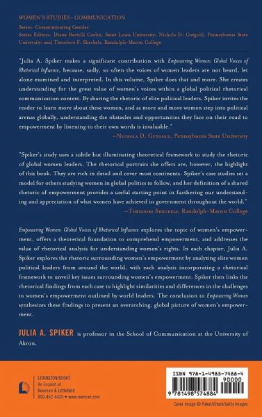 Empowering Women: Global Voices of Rhetorical Influence explores the topic of women's empowerment, offers a theoretical foundation to understand empowerment, and addresses the value of applying a rhetorical analysis to understand women's rights.