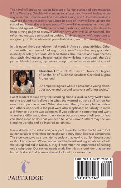 The novel will appeal to readers because of its high stakes and pure message. If Amy West fails, Drisdale will continue to fall apart and lives will be lost in one way or another. Readers will find themselves asking how? How will she assist a town in a district the society has turned its back on? How will she upkeep the school and hospital as only one person? How will she maintain her drive with the world against her? With the constant questioning will bring the desire to keep turning pages to discover whether Amy West will fail or succeed. The refreshing message surrounding undying kindness and why it's important to not give up on those who need you will also bring warmth to readers' hearts. In this novel, there's an element of magic in Amy's strange abilities. Other stories with the theme of 'helping those in need' are either very grounded in reality or solely fictitious. We read stories about fairies and super heroes that teach kindness and helpfulness all the while but in this book, there's a perfect blend of realism, mystery and magic that makes for an intriguing read.