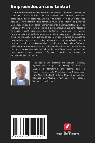 O empreendedorismo teatral expõe os indivíduos a métodos e formas de lidar com o teatro não só como um método, mas também como uma profissão e, por conseguinte, um meio de emprego. O estudo das artes teatrais a nível terciário deve tornar-se muito mais atrativo do ponto de vista académico, bem como economicamente benéfico/rentável para os indivíduos. Um empresário de teatro é aquele indivíduo que tem interesse, formação e qualificação numa área do teatro e consegue empregar de forma inovadora os conhecimentos para criar o máximo de produtividade e o máximo de lucro. Na sequência do desemprego, os cursos adaptados às necessidades de emprego são relevantes e indispensáveis para o desenvolvimento dos indivíduos, das comunidades e das nações. Todos os profissionais do teatro devem ser vistos igualmente como empresários do teatro. Espera-se que este livro sirva, de certa forma, como um guia útil para aqueles que procuram formas concretas de entrar no Empreendedorismo Teatral.