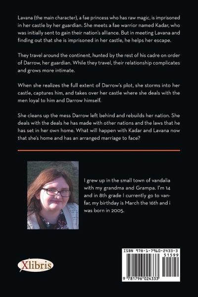Lavana (the main character), a fae princess who has raw magic, is imprisoned in her castle by her guardian. She meets a fae warrior named Kadar, who was initially sent to gain their nation's alliance. But in meeting Lavana and finding out that she is imprisoned in her castle, he helps her escape. They travel around the continent, hunted by the rest of his cadre on order of Darrow, her guardian. While they travel, their relationship complicates and grows more intimate. When she realizes the full extent of Darrow's plot, she storms into her castle, captures him, and takes over her castle where she deals with the men loyal to him and Darrow himself. She cleans up the mess Darrow left behind and rebuilds her nation. She deals with the deals he has made with other nations and the laws that he has set in her own home. What will happen with Kadar and Lavana now that she's home and has an arranged marriage to face?
