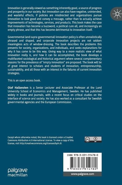 Governmental (and supra-governmental) innovation policy is often unrealistically phrased and shaped, and corporate innovation projects are not seldom meaningless acts of window-dressing. The book describes the problems this presents for society, organizations, and individuals, and seeks explanations for why it has come to be this way. Giving way to a more realistic view of what innovation really is, and how it can beaccomplished, the book develops a multifaceted sociological and historical argument where several complementary reasons for the prevalence of "empty innovation" are proposed. The book will be of great interest to scholars and students of innovation, entrepreneurship, sustainability, and all those with an interest in the failures of current innovation strategies.