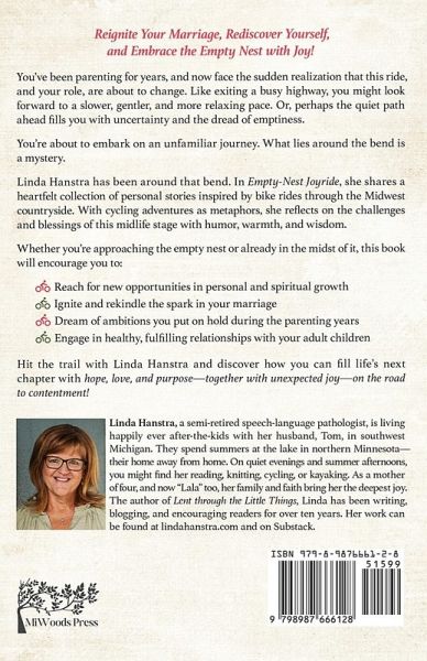 Reignite Your Marriage, Rediscover Yourself, and Embrace the Empty Nest with Joy! You've been parenting for years, and now face the sudden realization that this ride, and your role, are about to change. Like exiting a busy highway, you might look forward to a slower, gentler, and more relaxing pace. Or, perhaps the quiet path ahead fills you with uncertainty and the dread of emptiness. You're about to embark on an unfamiliar journey. What lies around the bend is a mystery. Linda Hanstra has been around that bend. In Empty-Nest Joyride, she shares a heartfelt collection of personal stories inspired by bike rides through the Midwest countryside. Using cycling adventures as metaphors, she reflects on the challenges and blessings of this midlife stage with humor, warmth, and wisdom. Whether you're approaching the empty nest or already in the midst of it, this book will encourage you to: Reach for new opportunities in personal and spiritual growth Ignite and rekindle the spark in your marriage Dream of ambitions you put on hold during the parenting years Engage in healthy, fulfilling relationships with your adult children Hit the trail with Linda Hanstra and discover how you can fill life's next chapter with hope, love, and purpose-together with unexpected joy-on the road to contentment.