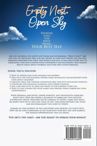 Empty Nest, Open Sky: Soaring into the Next Phase, Your Best Self is a compassionate and uplifting guide designed to help you navigate the emotional landscape of empty nest syndrome. As a parent whose identity has been closely tied to raising children, you may feel a profound sense of loss, uncertainty, or even excitement when they move out. Through heartfelt storytelling and practical wisdom, author Audrey Daric reassures you that the transition from full-time caregiver to a thriving individual opens the door to new possibilities and personal growth. Within these pages, you will find thoughtful strategies for managing the shifting dynamics at home, from rediscovering personal passions and fulfilling hobbies to reconnecting with your spouse, partner, or friends. Audrey explores the importance of self-care and mental well-being, revealing how nurturing your own interests can reignite a sense of purpose. By delving into topics such as career reinvention, travel, and creative exploration, the book provides a roadmap for building a life that resonates with your evolving aspirations. Audrey also shines a gentle light on maintaining healthy connections with your grown children. She guides you through the delicate balance of supporting their independence while finding new ways to remain close and share meaningful moments. Drawing on her personal experiences and extensive research, she demonstrates that letting go doesn't mean losing touch; rather, it can be an opportunity for deeper and more fulfilling bonds. Whether you are grappling with feelings of melancholy or embracing the freedom that comes with an open nest, Empty Nest, Open Sky offers insights, comfort, and encouragement. With warmth and optimism, Audrey invites you to embark on a journey of self-discovery, reminding you that an empty nest is not an end, but a bold beginning in which the sky truly is the limit.