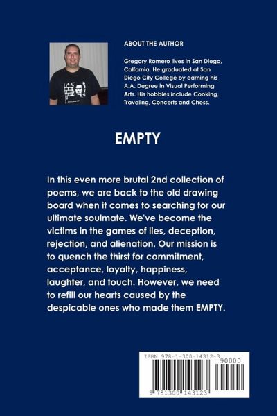 In this even more brutal 2nd collection of poems, we are back to the old drawing board when it comes to searching for our ultimate soulmate. We've become the victims in the games of lies, deception, rejection, and alienation. Our mission is to quench the thirst for commitment, acceptance, loyalty, happiness, laughter, and touch. However, we need to refill our hearts caused by the despicable ones who made them EMPTY.