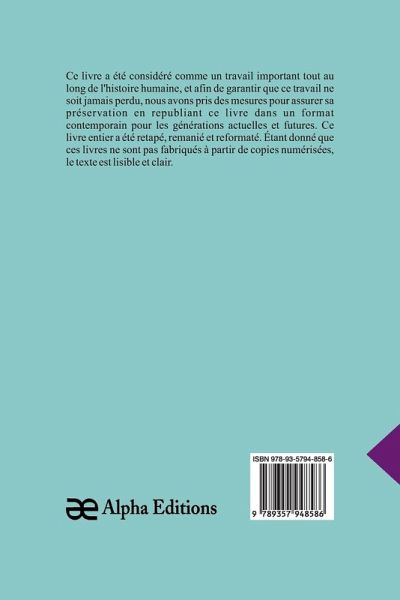 En chine: Merveilleuses histoires, est un livre classique et rare, qui a été considéré comme important tout au long de l'histoire de l'humanité, et pour que cet ouvrage ne soit jamais oublié, chez Alpha Editions, nous avons fait des efforts pour sa préservation en rééditant ce livre dans un format moderne pour les générations présentes et futures. . Tout ce livre a été reformaté, retapé et repensé. Ces livres ne sont pas constitués de copies numérisées de leur ¿uvre originale et leur texte est donc clair et lisible. Ce livre remarquable s'inscrit dans les genres de History, General and Eastern Hemisphere