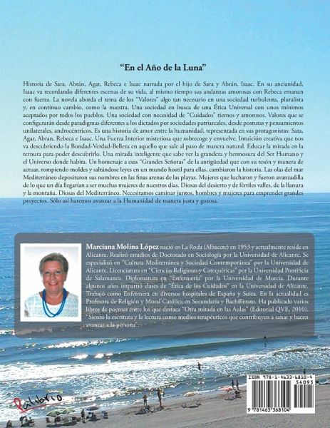 RESUMEN "En el Año de la Luna" Historia de Sara, Abrán, Agar, Rebeca e Isaac narrada por el hijo de Sara y Abrán, Isaac. En su ancianidad, Isaac va recordando diferentes escenas de su vida, al mismo tiempo sus andanzas amorosas con Rebeca emanan con fuerza. La novela aborda el tema de los "Valores" algo tan necesario en una sociedad turbulenta, pluralista y, en continuo cambio, como la nuestra. Una sociedad en busca de una Ética Universal con unos mínimos aceptados por todos los pueblos. Una sociedad con necesidad de "Cuidados" tiernos y amorosos. Valores que se configurarán desde paradigmas diferentes a los dictados por sociedades patriarcales, desde posturas y pensamientos unilaterales, androcéntricos. Es una historia de amor entre la humanidad, representada en sus protagonistas: Sara, Agar, Abran, Rebeca e Isaac. Una Fuerza Interior misteriosa que sobrecoge y envuelve. Intuición creativa que nos va descubriendo la Bondad-Verdad-Belleza en aquello que sale al paso de manera natural. Educar la mirada en la ternura para poder descubrirlo. Una mirada inteligente que sabe ver la grandeza y hermosura del Ser Humano y el Universo donde habita. Un homenaje a esas "Grandes Señoras" de la antigüedad que con su tesón y manera de actuar, rompiendo moldes y saltándose leyes en un mundo hostil para ellas, cambiaron la historia. Las olas del mar Mediterráneo depositaron sus nombres en las finas arenas de las playas. Mujeres que lucharon y fueron avanzadilla de lo que un día llegarían a ser muchas mujeres de nuestros días. Diosas del desierto y de fértiles valles, de la llanura y la montaña. Diosas del Mediterráneo. Necesitamos caminar juntos, hombres y mujeres para emprender grandes proyectos. Sólo así haremos avanzar a la Humanidad de manera justa y gozosa.