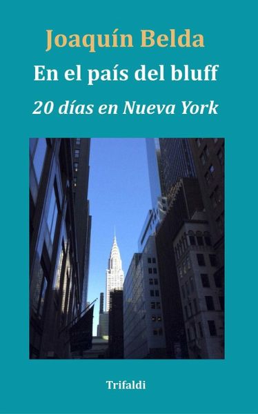 Nueva York en junio de 1926. Joaquín Belda llega a la gran ciudad procedente de Méjico, dispuesto a darnos sus impresiones sobre todo lo que sea objeto de su curiosidad de gran novelista. La Megalópolis de la Gran Manzana está sumida en la Ley Seca, pero los muchos modos que hay de sortearla resulta en la pluma de Belda un catálogo de formas ingeniosas de hacerlo. De la mano del corresponsal de ABC en la gran ciudad, Miguel de Zárraga, que hace de las veces de cicerone, y de otros amigos de la prensa a los que va conociendo durante su estancia, Belda recorre todos los ambientes y todos los barrios. Interesado en la producción cinematográfica, como otros muchos escritores españoles, visita las oficinas centrales de la Fox y la Paramount. Se relaciona con la nutrida colonia española en Nueva York en la que no falta alguna pareja de posición elevada que celebra en su lujoso apartamento neoyorquino veladas muy interesantes. Nada escapa a la observación atenta y burlona de Belda: los espectáculos, las costumbres, la ópera, los clubs españoles en Nueva York, las editoriales y librerías, los ricos de la Quinta Avenida.Frecuenta a los actores y actrices españoles presentes en la gran ciudad, como Ernesto Vilches e Irene López Heredia, o la simpática tonadillera y bailaora Amalia Molina. Cuando ya casi finaliza su estancia en la ciudad de los rascacielos, imparte una conferencia desde la sala Town Hall de la calle 43, y visita la casa de Edgard Allan Poe. ?Broadway es una calle relativamente serpentinesca, que atraviesa Nueva York de parte a parte, haciendo eses como si estuviera borracha, como si se le hubiera subido a la cabeza el deslumbramiento de su propia luz. El transeúnte que lo quiera seguir a pie en todo su trayecto ?cuatro horas de caminos; yo lo intenté varias veces? se verá sometido a continuas sorpresas? EN EL PAÍS DEL BLUFF (Veinte días en Nueva York)