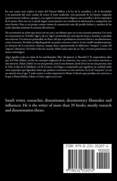 En esta cuarta tesis explico el relato del Génesis bíblico a la luz de la metafísica y de la literalidad, y no partiendo del error común de tomar el texto traducido, sino partiendo de las fuentes originales (primeramente, hebreas y griegas), y no según la interpretación religiosa, sino científica y de los arquetipos de la mente. Pero esto no se puede lograr correctamente sin corroborar la información y compararla con otras fuentes. Esto es así porque existen cientos de manuscritos más del pueblo hebreo, y muchos de los cuales abordan asimismo la creación del universo. No encontrarás un relato que inicia con un caos y un abismo, pues ese es un escenario posterior. Las cosas no comenzaron así. Ya había "algo", y de ese "algo", constituido por otro tipo de reinos y mundos, se produjo este universo. Un universo primordial, no físico, del que se produjeron universos físicos y sus dimensiones, como el nuestro. No hubo un Big Bang desde un punto concreto, o único. La luz estalló simultáneamente, en términos de la conciencia cósmica, aunque fuese experimentado en diferentes "tiempos" a razón del "espacio" (distancia). No hubo 6 días de creación. Hubo ciclos antes de esa "luz", y 6 eones posteriores a ese marco cronológico. ¿Qué significa todo ese relato de los mal llamados "días" del génesis (o 'Barashit')? Te sorprendería saber que el E-Din (Edén), no fue un concepto originario de los sumerios, mas evoca a los reinos anteriores a este universo. Adam (Adán) no era una persona, sino la raza humana. Javah (Eva) no era una persona, sino la Vida, la hija de la Sabiduría y la Fe-Certeza. Acá llegas a comprender qué significan en realidad todos estos arquetipos que figuraban mitos que primero ocurrieron en otro universo. Sí, la tal "serpiente" no era un animal, sino el ego. Y todo cuanto se relata representa la Mente Colectiva que produjo este universo, a la que se llama Elohim, Adam o Cristo, según sea el caso.
