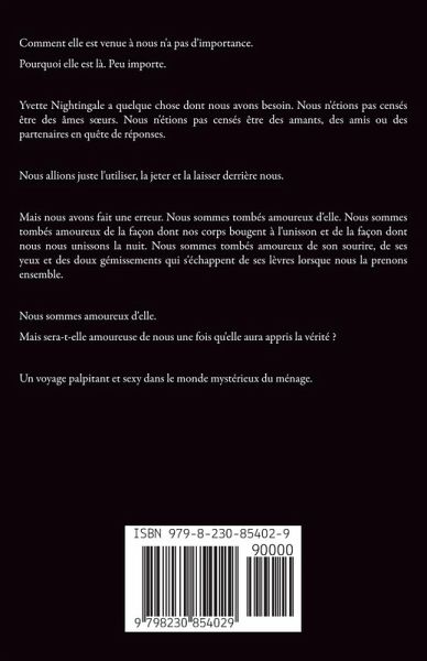 Comment elle est venue à nous n'a pas d'importance. Pourquoi elle est là. Peu importe. Yvette Nightingale a quelque chose dont nous avons besoin. Nous n'étions pas censés être des âmes surs. Nous n'étions pas censés être des amants, des amis ou des partenaires en quête de réponses. Nous allions juste l'utiliser, la jeter et la laisser derrière nous. Mais nous avons fait une erreur. Nous sommes tombés amoureux d'elle. Nous sommes tombés amoureux de la façon dont nos corps bougent à l'unisson et de la façon dont nous nous unissons la nuit. Nous sommes tombés amoureux de son sourire, de ses yeux et des doux gémissements qui s'échappent de ses lèvres lorsque nous la prenons ensemble. Nous sommes amoureux d'elle. Mais sera-t-elle amoureuse de nous une fois qu'elle aura appris la vérité ? Un voyage palpitant et sexy dans le monde mystérieux du ménage.