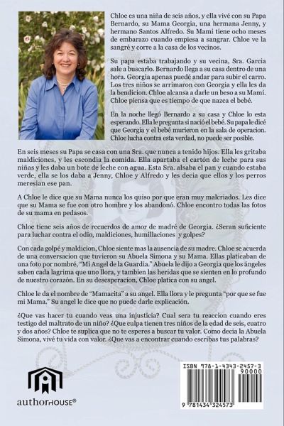 Chloe es una niña de seis años, y ella vivé con su Papa Bernardo, su Mama Georgia, una hermana Jenny, y hermano Santos Alfredo. Su Mami tiene ocho meses de embarazo cuando empiesa a sangrar. Chloe ve la sangré y coré a la casa de los vecinos. Su papa estaba trabajando y su vecina, Sra. Garcia salé a buscarlo. Bernardo llega a su casa dentro de una hora. Georgia apenas puedé andar para subir el carro. Los tres niños se arrimaron con Georgia y ella les da la bendicion. Chloe alcansa a darle un beso a su Mamí. Chloe piensa que es tiempo de que nazca el bebé. En la noché llego Bernardo a su casa y Chloe lo esta esperando. Ella le pregunta si nacio el bebé. Su papa le dicé que Georgia y el bebé murieron en la sala de operacion. Chloe lucha contra esta verdad, no puedé ser posible. En seis meses su Papa se casa con una Sra. que nunca a tenido hijos. Ella les gritaba maldiciones, y les escondia la comida. Ella apartaba el cartón de leche para sus niñas y les daba un boté de leche con agua. Esta Sra. alsaba el pan y cuando estaba verde, ella se los daba a Jenny, Chloe y Alfredo y les decia que ellos y los perros meresian ese pan. A Chloe le dice que su Mama nunca los quiso por que eran muy malcriados. Les dice que su Mama se fue con otro hombre y los abandono. Chloe encontro todas las fotos de su mama en pedasos. Chloe tiene seis años de recuerdos de amor de madré de Georgia. ¿Seran suficiente para luchar contra el odio, maldiciones, humillaciones y golpes? Con cada golpé y maldicion, Chloe sienté mas la ausencia de su Madré. Chloe se acuerda de una conversacion que tuvieron su Abuela Simona y su Mama. Ellas platicaban de una foto por nombré, "Mi Angel de la Guardia." Abuela le dijo a Georgia que los angeles saben cada lagrima que uno llora, y tambien las heridas que se sienten en lo profundo de nuestro corazon. En su desesperacíon, Chloe platica con su angel. Chloe le da el nombre de "Mamacita" a su angel. Ella llora y le pregunta "por que se fue mi Mama." Su angel le dice que no puede darle explicacion. ¿Que vas hacer tu cuando ves una injusticia? Cual sera tu reaccion cuando eres testigo del maltrato de un niño? ¿Que culpa tienen tres niños de la edad de seis, cuatro y dos años? Chloe te suplica que no te esperes a buscar tu valo. Como decia la Abuela Simona, vivé tu vida con valor. ¿Que vas a encontrar cuando escribas tus palabras? Antonia Gonzales Rojas