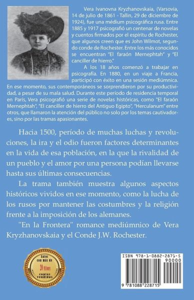 Hacia 1500, período de muchas luchas y revoluciones, la ira y el odio fueron factores determinantes en la vida de esa población, en la que la rivalidad de un pueblo y el amor por una persona podían llevarse hasta sus últimas consecuencias. La trama también muestra algunos aspectos históricos vividos en ese momento, como la lucha de los rusos por mantener las costumbres y la religión frente a la imposición de los alemanes. "En la Frontera" romance mediúmnico de Vera Kryzhanovskaia y el Conde J.W. Rochester.