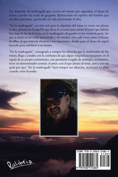 Ese despertar de madrugada que recorre mi mente por segundos, el deseo de saciar y perder ese nudo de garganta. Refrescando mi espíritu del hambre que mi alma proclama, queriendo ser vida observando el alba. "En la madrugada", un reto más para la alquimia del amor en verso, mi pluma se alza, plasma en el papel lo que dicta el corazón para tentar al lector que deleita leer bajo la luz de la luna, en la madrugada ahogando en los versos la pena, los que se alzan en mi vuelo apasionado y sin miedos, vive cada verso como si fueran de ellos, al que toma la vivencia y sus emociones, dando paso al deseo de seguir leyendo para satisfacer a su mente. "En la madrugada", consagrada a romper los silencios por la motivación de los versos, llega a ustedes con la confianza de que algún resquicio se encuentre en el espejo de su propio sentimiento, este poemario surgido de múltiples momentos, tiene un denominador común: el amor, con el que abrazo al verso, ante y por un quid pro quo "En la madrugada" hará romper sus silencios, acariciará su alma cuando estén leyendo.