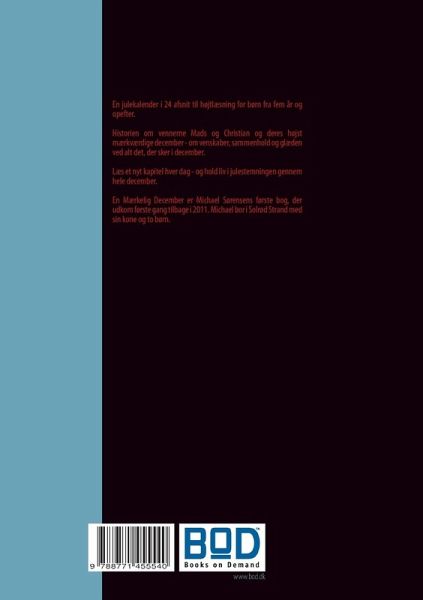 En julekalender i 24 afsnit til højtlæsning for børn fra fem år og opefter. Historien om vennerne Mads og Christian og deres højst mærkværdige december - om venskaber, sammenhold og glæden ved alt det, der sker i december. Læs et kapitel hver dag - og hold liv i julestemningen gennem hele december.