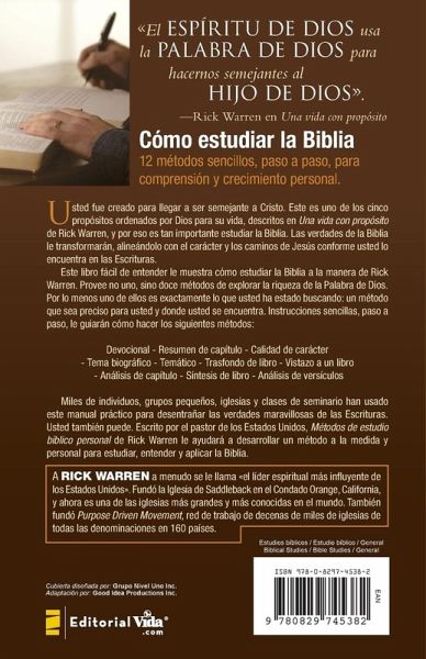 Este libro explica en detalles 12 maneras diferentes para estudiar las escrituras, viviendo las instrucsiones paso-a-paso... usted aprender¿¿ varios estudios personales incluyendo; Devosional, biografico, actualidad, antepasados del libro, y el estudio de la palabra. Ha sido traducido en 7 lenguas.