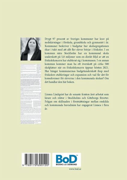 Drygt 97 procent av Sveriges kommuner har krav på nedskärningar i förskola, grundskola och gymnasiet i år. Kommuner beskriver i budgetar hur skolsegregationen ökar i takt med att allt fler elever börjar i friskolor. I en kommun nära Stockholm har en kommunal skola underskott på 5,8 miljoner som en direkt följd av att en friskolekoncern har etablerat sig i kommunen. I en annan kommun kommer man ha ett överskott på cirka 500 skolplatser när en friskolekoncern öppnar hösten 2021. Hur hänger kommunernas budgetunderskott ihop med friskolors etableringar och expansion och vad får det för konsekvenser för eleverna i den kommunala skolan? Om det handlar den här boken.
