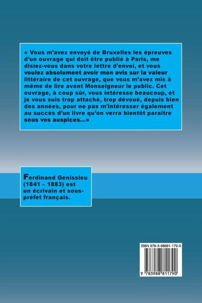 Vous m'avez envoyé de Bruxelles les épreuves d'un ouvrage qui doit être publié à Paris, me disiez-vous dans votre lettre d'envoi, et vous voulez absolument avoir mon avis sur la valeur littéraire de cet ouvrage, que vous m'avez mis à même de lire avant Monseigneur le public. Cet ouvrage, à coup sûr, vous intéresse beaucoup, et je vous suis trop attaché, trop dévoué, depuis bien des années, pour ne pas m'intéresser également au succès d'un livre qu'on verra bientôt paraître sous vos auspices...