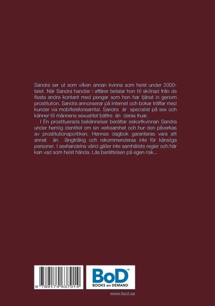 I En prostituerads bekännelser berättar eskortkvinnan Sandra under hemlig identitet om sin verksamhet och hur den påverkas av prostitutionspolitiken. Hennes dagbok garanteras vara allt annat än långtråkig och rekommenderas inte för känsliga personer. I sexhandelns värld gäller inte samhällets regler och här kan vad som helst hända. Läs berättelsen på egen risk...
