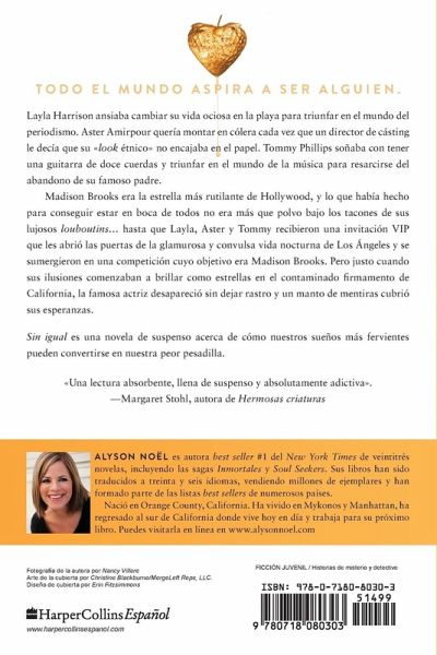 Este libro de la autora best seller n¿¿mero uno del New York Times en una emocionante historia de suspenso sobre c¿¿mo nuestros sue¿¿os m¿¿s desesperados pueden convertirse en nuestras m¿¿s oscuras pesadillas. Todo el mundo quiere ser alguien. Layla Harrison quiere intercambiar sus tiempos de playa por un escritorio de reportera. Aster Amirpour quiere gritarle al siguiente director de reparto cuando le dice: ¿¿necesitamos ¿¿tnico, pero no tu tipo de ¿¿tnico¿¿. Tommy Phillips sue¿¿a con comprarse una guitarra de doce cuerdas y usarla para trazar virtuosamente el camino hacia la vida de su famoso padre ausente. Pero Madison Brooks tom¿¿ las riendas del destino y lo hizo su sirviente hace mucho tiempo. Ella es la estrella m¿¿s popular de Hollywood, y las cosas que hizo para que su nombre estuviera en boca de todo el mundo son meramente una mancha en el pavimento, polvo debajo de sus tacones marca Louboutin. Eso hasta que Layla, Aster y Tommy se encuentran con una invitaci¿¿n VIP al mundo glamuroso y ¿¿spero de la vida nocturna de Los ¿¿ngeles, y aträ¿dos a una competencia altamente riesgosa donde Madison Brooks es el objetivo. Justamente cuando sus esperanzas comienzan a resplandecer como estrellas entre el smog de California, Madison Brooks desaparece... Y todas sus esperanzas se desvanecen en la neblina y confusi¿¿n de sus mentiras. Busca tambi¿¿n La lista negra que le da continuidad a esta serie estremecedora.