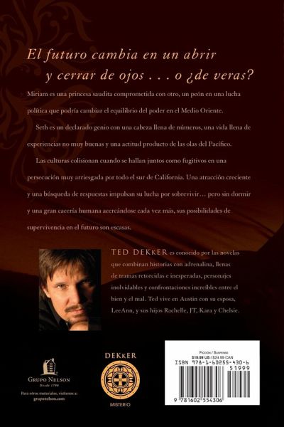 De la mente de Ted Dekker, autor de gran ¿¿xito de ventasseg¿¿n el New York Times, viene la pregunta: "Si usted supiera elresultado de sus decisiones, ¿¿determinar¿¿a eso lo que hiciera?" Seth Borders tiene uno de los coeficientes intelectuales m¿¿s altos delmundo. Ahora de pronto es atacado por un poder incre¿¿ble, la habilidad de verm¿¿ltiples futuros posibles, y se encuentra con Miriam, una hermosa princesa deArabia Saudita que se ha escapado de un matrimonio forzado. Las culturascolisionan cuando Seth y Miriam son lanzados juntos y obligados a huir defuerzas decididas a secuestrar o matar a Miriam. Una historia intoxicantedesarrollada en medio de las arenas movedizas del Medio Oriente y los caminosescondidos de Estados Unidos, En un instante toca temas tan antiguoscomo la tierra misma... y tan actuales como los titulares de primera plana dehoy en d¿¿a.