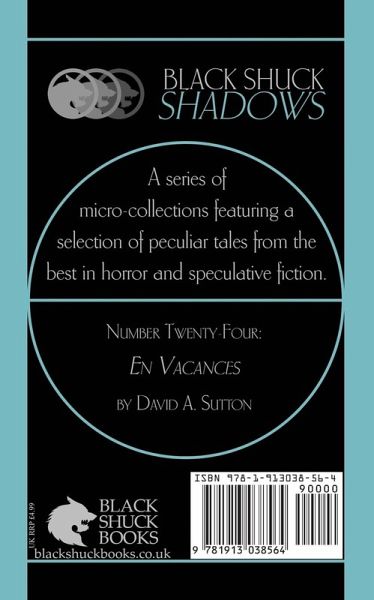 A series of micro-collections featuring a selection of peculiar tales from the best in horror and speculative fiction. From Black Shuck Books and David A. Sutton comes En Vacances, the twenty-fourth in the Black Shuck SHADOWS series.