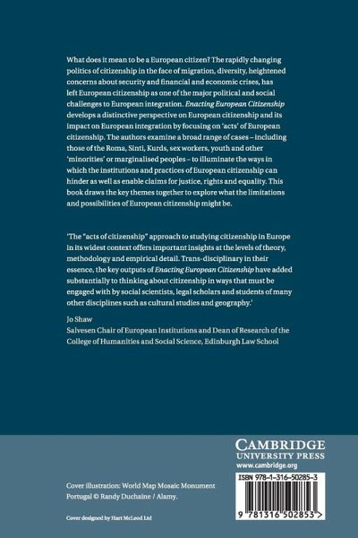 What does it mean to be a European citizen? The rapidly changing politics of citizenship in the face of migration, diversity, heightened concerns about security and financial and economic crises, has left European citizenship as one of the major political and social challenges to European integration. Enacting European Citizenship develops a distinctive perspective on European citizenship and its impact on European integration by focusing on 'acts' of European citizenship. The authors examine a broad range of cases - including those of the Roma, Sinti, Kurds, sex workers, youth and other 'minorities' or marginalised peoples - to illuminate the ways in which the institutions and practices of European citizenship can hinder as well as enable claims for justice, rights and equality. This book draws the key themes together to explore what the limitations and possibilities of European citizenship might be.