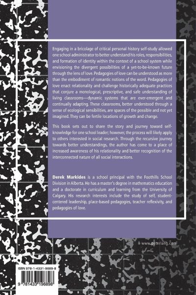 Engaging in a bricolage of critical personal history self-study allowed one school administrator to better understand his roles, responsibilities, and formation of identity within the context of a school system while envisioning the divergent possibilities of a yet-to-be-known future through the lens of love. Pedagogies of love can be understood as more than the embodiment of romantic notions of the word. Pedagogies of love enact relationality and challenge historically adequate practices that conjure a monological, prescriptive, and safe understanding of living classrooms-dynamic systems that are ever-emergent and continually adapting. These classrooms, better understood through a sense of ecological sensibilities, are spaces of the possible and not yet imagined. They can be the fertile locations of growth and change.