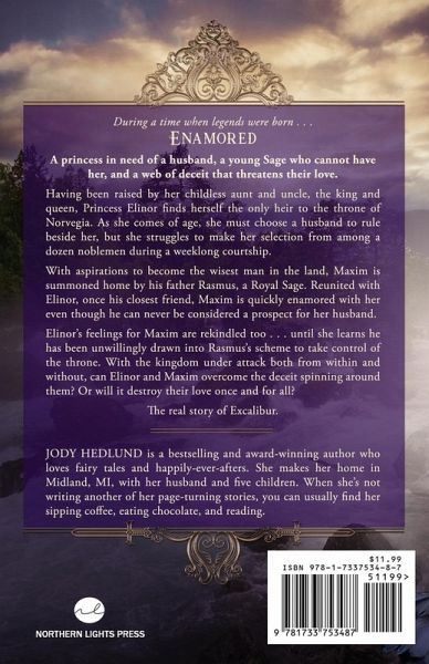 During a time when legends were born . . . ENAMORED A princess in need of a husband, a young Sage who cannot have her, and a web of deceit that threatens their love. Having been raised by her childless aunt and uncle, the king and queen, Princess Elinor finds herself the only heir to the throne of Norvegia. As she comes of age, she must choose a husband to rule beside her, but she struggles to make her selection from among a dozen noblemen during a weeklong courtship. With aspirations to become the wisest man in the land, Maxim is summoned home by his father Rasmus, a Royal Sage. Reunited with Elinor, once his closest friend, Maxim is quickly enamored with her even though he can never be considered a prospect for her husband. Elinor's feelings for Maxim are rekindled too . . . until she learns he has been unwillingly drawn into Rasmus's scheme to take control of the throne. With the kingdom under attack both from within and without, can Elinor and Maxim overcome the deceit spinning around them? Or will it destroy their love once and for all? The real story of Excalibur.