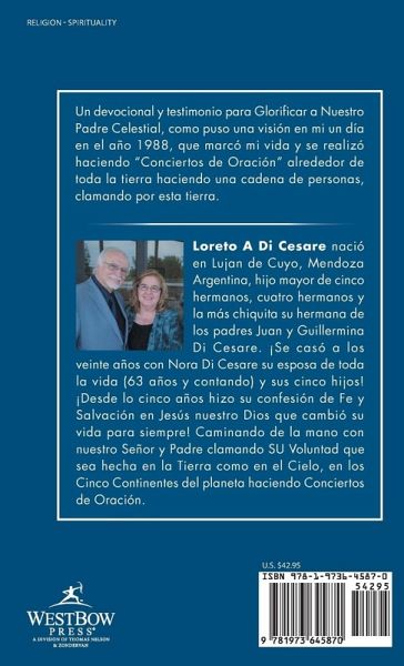 Loreto A Di Cesare nació en Lujan de Cuyo, Mendoza Argentina, hijo mayor de cinco hermanos, cuatro hermanos y la mas chiquita su hermana de los padres Juan y Guillermina Di Cesare. Se casó a los veinte años con Nora Di Cesare su esposa de toda la vida (63 años y contando) y sus cinco hijos! Desde lo cinco años hizo su confesión de Fe y Salvación en Jesús nuestro Dios que cambió su vida para siempre! Caminando de la mano con nuestro Señor y Padre clamando SU Voluntad que sea hecha en la Tierra como en el Cielo, en los Cinco Continentes del planeta haciendo Conciertos de Oración.
