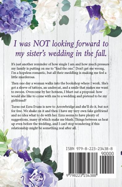 I was NOT looking forward to my sister's wedding in the fall. It's just another reminder of how single I am and how much pressure my family is putting on me to "find the one." Don't get me wrong, I'm a hopeless romantic, but all their meddling is making me feel a little murderous. Then one day a woman walks into the bookshop where I work. She's got a sleeve of tattoos, an undercut, and a smile that makes me want to swoon. Overcome by her hotness, I blurt out a proposal: how would she like to come with me to a wedding and pretend to be my girlfriend? Turns out Ezra Evans is new to Arrowbridge and she'll do it, but not for free. We shake on it and then I have my very own fake girlfriend and no idea what to do with her. Ezra seems to have plenty of suggestions, many of which make me blush. Things between us heat up even before the wedding, and I can't stop wondering if this relationship might be something real after all.