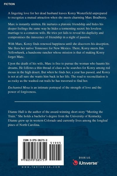 A lingering love for her dead husband leaves Korey Westerfield unprepared to recognize a mutual attraction when she meets charming Marc Bradberry. Marc is instantly smitten. He nurtures a platonic friendship and hides his deeper feelings the same way he hides a tormenting secret: his loveless marriage to a comatose wife. He tries yet fails to reveal his duplicity and compromises the innocence of friendship in a night of passion. With Marc, Korey finds renewed happiness until she discovers his deception. She flees her native Tennessee for New Mexico. There, Korey meets Jim Yellowhawk, a handsome rancher whose mission is that of making Korey forget Marc. Upon the death of his wife, Marc is free to pursue the woman who haunts his dreams. He follows a thin thread of clues as he searches for Korey among red mesas in the high desert. But when he finds her, a year has passed, and Korey is not at all sure she wants him back in her life. The road to reconciliation is as rocky as the washed-out trails he has traversed to find her.