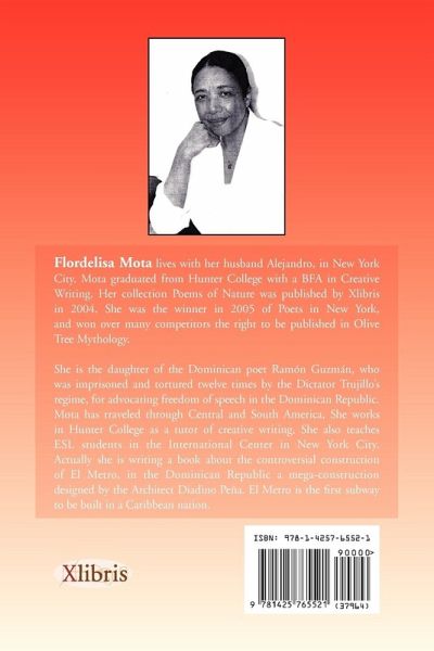 Enchanted, the complete stories of Flordelisa Mota is a literary event. They are brought together for the first time in a single volume. Here are nine outstanding fictional stories written to please the readers of this new millennium.Poems of Nature has established her, with others, in the front category of the century's poets. Now her stories arouse out of a mosaic of different races, languages and beliefs. "Chasing a Fiend" open the door of enchantment and mystifying events in the life of General William Williams. A veteran of the Vietnam War he fell in love with Summer: she is an illusion. To be with her for ever, General Williams must defeat the evil fiend Winter. In Quebec City, the monster appeared. The ending is explosive in human feelings. "Bushwick's Street Tales" is the story of Santos, whose tranquility is disturbed by the appearance of Nora; the shabby building in Brooklyn is the scenery where love, delusion and a battered wife make the perfect balance for an intensified drama. Santos' schizophrenia makes the story human and intangible at once. "The Parrot Without Wings" is the story of an international thieves' organization planning a robbery from the Metropolitan Museum of Art in New York City. A Moroccan looks through the majestic façade of the building, trying to figure out how to get inside. Beatrice is the key, also the victim. "To be Free" is a hilarious love affair between two lighted candles. Flame and Fire fall in love. They live in the palace of Countess Frances. They plan to escape from the palace, but before they can they have to pass trough "Starry Light," a priceless Vincent van Gogh Masterpiece. The readers will be driven into fantasy by the tenderness of the characters. "Museum of Sand" is a story deeply connected with emigrants. For those who have left their homeland, this story will bring tears and joy. Angela Maria's vision of the Egyptian Lady is moving. The brutal assassination of Mexico's Police Commissioner impelled her to leave her country abruptly. It is a story about the few, to the delight of many. "Miss John" a beautiful girl's destiny is changed by her father when he chose a masculine name for her. This name molds her character and makes her vulnerable to blackmail. Miss John is an emotional story. Its beauty and ending is unsuspected. "The Secret" this story involves a mystery. With the background of 34th street and 6th Avenue, the plot reveals a homeless woman's dark life, and her insanity. Tanzía emerges as a princess from a foreign country. What a surprise for her when the dummy in a department store opens its eyes and lips become alive, speaking Tanzía's dialect. Amazing in beauty yet extravagant in details. "Santa" a story of tradition and superstition. Mr. Peralta, a patriarchal and powerful tyrant of his family. Santa, a delicate girl in love with a man who wants an impossible dream to have a son. The double face of truth becomes visible, and the strength of their characters makes it powerful. The story explores passionately the universal themes of love, betrayal, and survival. "They Were Amphibious" is based on a true story. The narrative is a trip to the past when airplanes landed on water. The readers, and specially the "baby boomers," will feel the nostalgia of Pan Am Clipper-the Sikorsky S40- and how aviation started in the Caribbean with tragedy. The sacrifice of a man, who was determined to be part of an effort of bringing civilization to a remote island, will motivate the readers' emotions. An exciting story about survival in an inhospitable surrounding. Robert runs to save his niece's life. He gives it all.