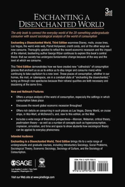 The only book to connect the everyday world of the 20-something undergraduate consumer with sound sociological analysis of the world of consumption Enchanting a Disenchanted World, Third Edition examines Disney, malls, cruise lines, Las Vegas, the world wide web, Planet Hollywood, credit cards, and all the other ways we now consume. Thoroughly updated to reflect the recent economic recession and the impact of the internet, bestselling author George Ritzer continues to explore this book's central thesis: that our society has undergone fundamental change because of the way and the level at which we consume. This Third Edition demonstrates how we have created new "cathedrals" of consumption (places that enchant us so as to entice us to stay longer and consume more) while continuing to take capitalism to a new level. These places of consumption, whether in our homes, the mall, or cyberspace, are in a constant state of "enchanting the disenchanted," luring us through new spectacles because their rational qualities are both necessary and deadening at the same time. New and Hallmark FeaturesOffers a unique analysis of the world of consumption, especially the settings in which consumption takes place Discusses the recent global economic recession throughout Offers rich details on consuming in such places as Las Vegas, Disney World, on cruise ships, in Wal-Mart, at McDonald's, and, new to this edition, on the Web Includes a wide range of theoretical perspectives-Marxian, Weberian, critical theory, postmodern theory-as well as a number of concepts such as hyperconsumption, implosion, simulation, and time and space to show students how sociological theory can be applied to everyday phenomena