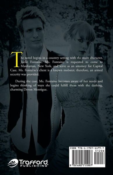 The novel begins in a country setting with the main character, Joelle Fontaine. Ms. Fontaine is requested to come to Manhattan, New York, and serve as an attorney for Capital Case. Ms. Fontaine's client is a known mobster; therefore, an armed security was provided. During the case, Ms. Fontaine becomes aware of her needs and begins thinking of ways she could fulfill them with the dashing, charming Devon Montigue.
