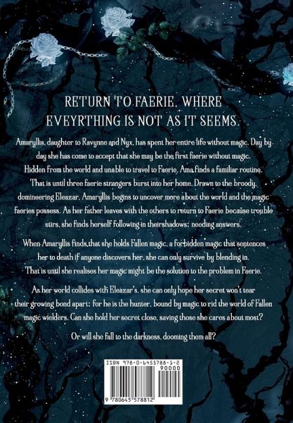 RETURN TO FAERIE, WHERE EVEYRTHING IS NOT AS IT SEEMS. Amaryllis, daughter to Ravynne and Nyx, has spent her entire life without magic. Day by day she has come to accept that she may be the first faerie without magic. Hidden from the world and unable to travel to Faerie, Ama finds a familiar routine. That is until three faerie strangers burst into her home. Drawn to the broody, domineering Eleazar, Amaryllis begins to uncover more about the world and the magic faeries possess. As her father leaves with the others to return to Faerie because trouble stirs, she finds herself following in their shadows; needing answers. When Amaryllis finds that she holds Fallen magic, a forbidden magic that sentences her to death if anyone discovers her, she can only survive by blending in. That is until she realises her magic might be the solution to the problem in Faerie. As her world collides with Eleazar's, she can only hope her secret won't tear their growing bond apart; for he is the hunter, bound by magic to rid the world of Fallen magic wielders. Can she hold her secret close, saving those she cares about most? Or will she fall to the darkness, dooming them all?