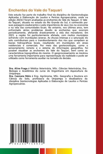 Este estudo faz parte do trabalho final da disciplina de Geotecnologias Aplicadas à Elaboração de Laudos e Perícias Agropecuárias, onde na edição 2023/2 foram analisadas as enchentes do Vale do Taquari. O Vale do Taquari, situado no estado do Rio Grande do Sul, é conhecido por suas paisagens exuberantes e pela importância de seus rios na economia e na vida das comunidades locais. No entanto, nos últimos anos, tem enfrentado sérios problemas devido às enchentes que ocorrem periodicamente, afetando drasticamente a vida dos moradores. Em 2023, a região foi particularmente afetada, com muitos municípios sofrendo com inundações severas. As chuvas intensas e a saturação do solo contribuíram para o transbordamento dos rios que compõem as bacias hidrográficas locais, resultando em inundações em áreas residenciais e comerciais. Por meio das geotecnologias, como o sensoriamento remoto e o sistema de informação geográfica, foi possível visualizar as enchentes do Vale do Taquari, bem como as características topográficas do mesmo. O geoprocessamento se mostrou uma ferramenta importante para representação da realidade e pode ser utilizada como ferramenta auxiliar na tomada de decisão.