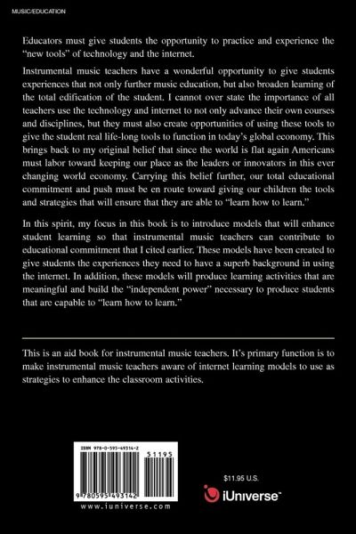 Educators must give students the opportunity to practice and experience the "new tools" of technology and the internet. Instrumental music teachers have a wonderful opportunity to give students experiences that not only further music education, but also broaden learning of the total edification of the student. I cannot over state the importance of all teachers use the technology and internet to not only advance their own courses and disciplines, but they must also create opportunities of using these tools to give the student real life-long tools to function in today's global economy. This brings back to my original belief that since the world is flat again Americans must labor toward keeping our place as the leaders or innovators in this ever changing world economy. Carrying this belief further, our total educational commitment and push must be en route toward giving our children the tools and strategies that will ensure that they are able to "learn how to learn." In this spirit, my focus in this book is to introduce models that will enhance student learning so that instrumental music teachers can contribute to educational commitment that I cited earlier. These models have been created to give students the experiences they need to have a superb background in using the internet. In addition, these models will produce learning activities that are meaningful and build the "independent power" necessary to produce students that are capable to "learn how to learn."