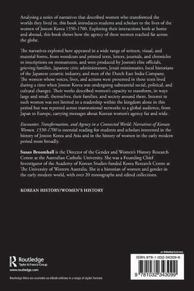 Analysing a series of narratives that described women who transformed the worlds they lived in, this book introduces students and scholars to the lives of the women of Joseon Korea 1550-1700. Exploring both their interactions at home and abroad, this book shows how the agency of these women reached far across the globe.