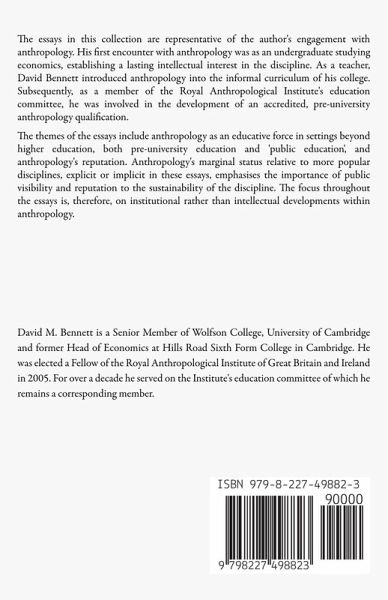 This short (164 pages) book is a collection of six essays that are representative of the author's engagement with anthropology. A connecting theme is anthropology as an educative force in settings beyond higher education, whether in pre-university education or, more widely, 'public education'. Anthropology's marginal status relative to more popular disciplines, explicit or implicit in these essays, emphasises the importance of public visibility and reputation to the sustainability of the discipline, reputation being addressed in two of these essays. The focus throughout the essays is, therefore, on institutional rather than intellectual developments within anthropology. The author's own encounter with anthropology was as an undergraduate studying economics, establishing a lasting intellectual interest in the discipline. He is a Fellow of the Royal Anthropological Institute of Great Britain and Ireland. As a member of the Institute's education committee, he was involved in the development of an accredited, pre-university anthropology qualification.