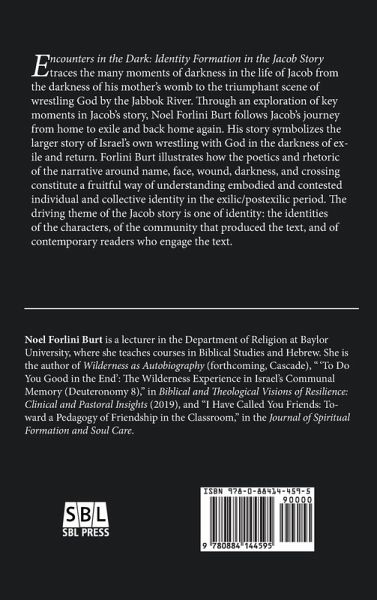 Encounters in the Dark: Identity Formation in the Jacob Story traces the many moments of darkness in the life of Jacob from the darkness of his mother's womb to the triumphant scene of wrestling God by the Jabbok River. Through an exploration of key moments in Jacob's story, Noel Forlini Burt follows his journey from home to exile and back home again. Jacob's story symbolizes the larger story of Israel's own wrestling with God in the darkness of exile and return.