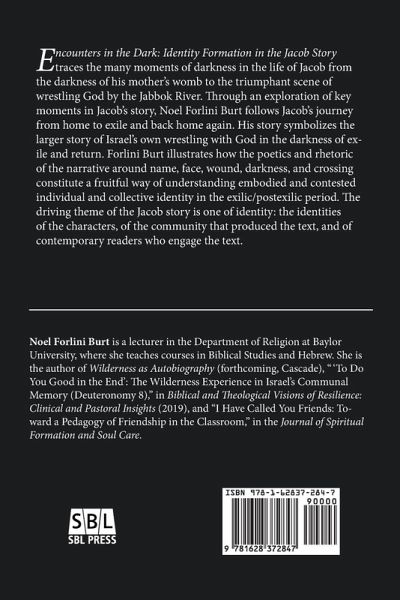 Encounters in the Dark: Identity Formation in the Jacob Story traces the many moments of darkness in the life of Jacob from the darkness of his mother's womb to the triumphant scene of wrestling God by the Jabbok River. Through an exploration of key moments in Jacob's story, Noel Forlini Burt follows his journey from home to exile and back home again. Jacob's story symbolizes the larger story of Israel's own wrestling with God in the darkness of exile and return.