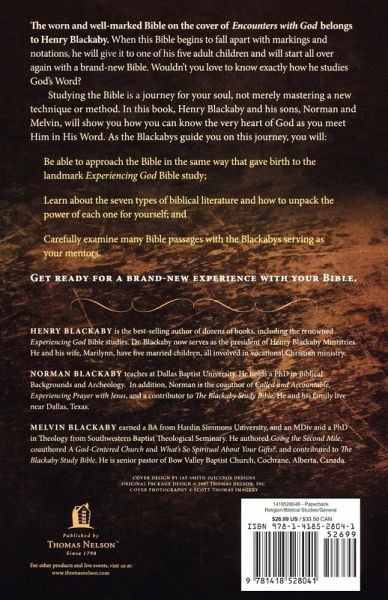 Renowned Bible teacher Henry Blackaby, and his sons Norman and Mel, believe that Bible study is far more than a study method--it is a way of life. The Blackabys help train readers to study effectively on their own by mentoring them through short passages from the seven types of literature in the Bible.